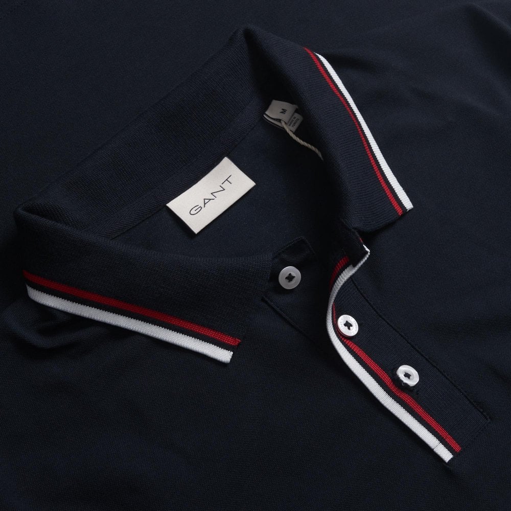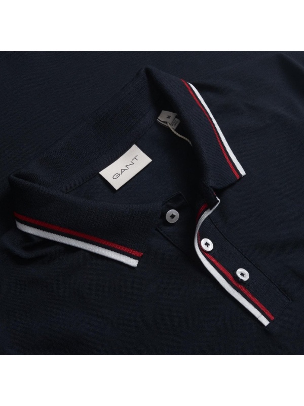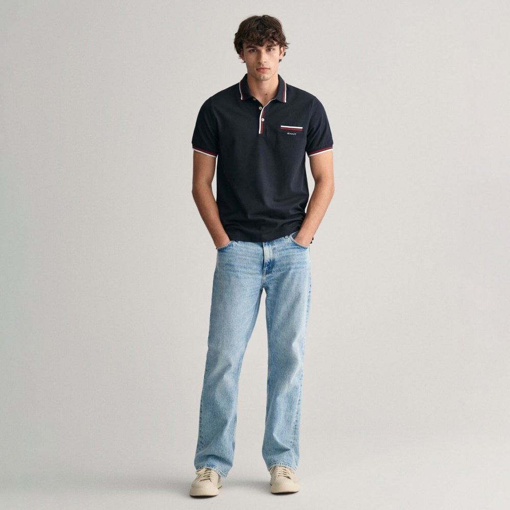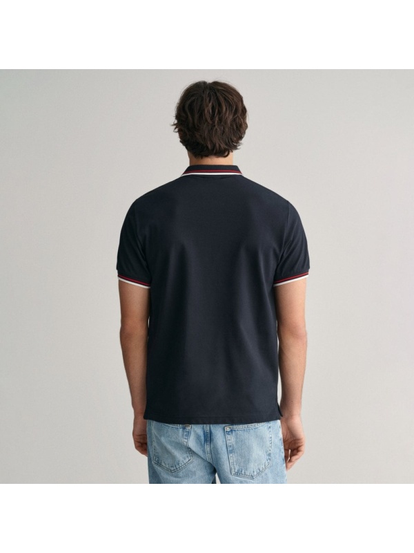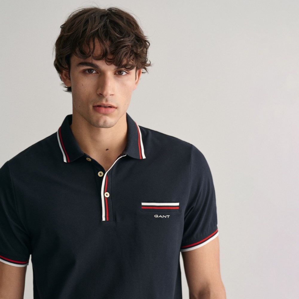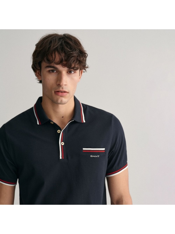 Gant ανδρική πόλο μπλούζα πικέ με τσέπη και contrast ρίγες στα τελειώματα Regular Fit 2013042