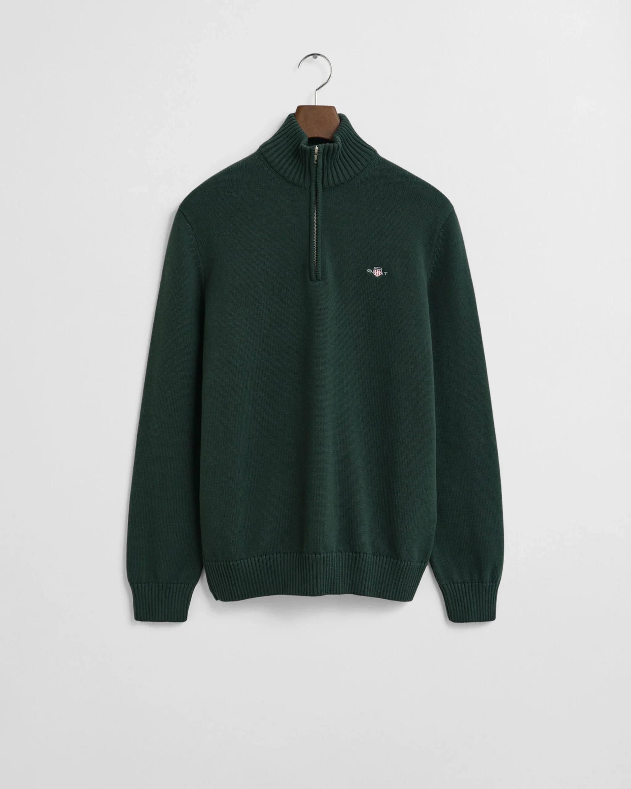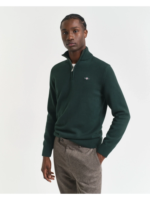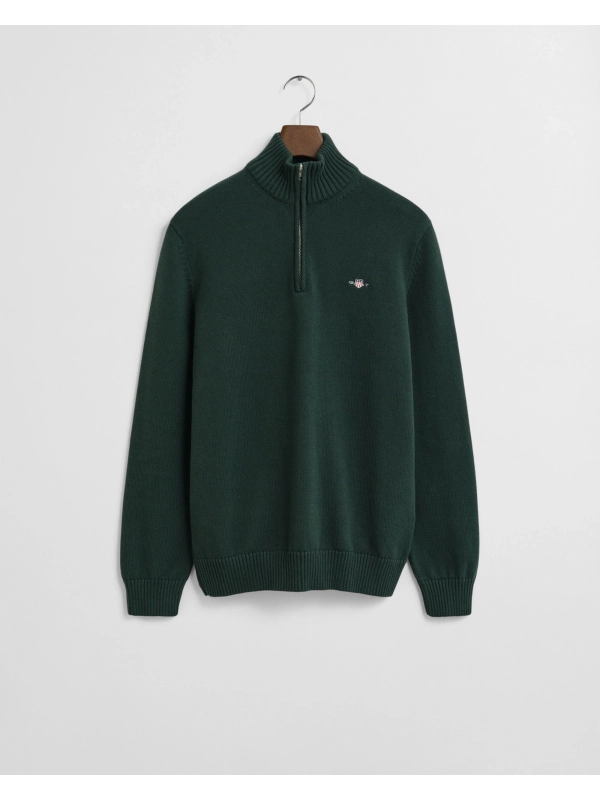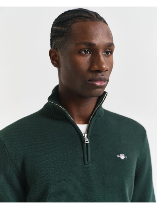 Πλεκτό πουλόβερ, μονόχρωμο, από τη νέα συλλογή του οίκου Gant. Είναι διακοσμημένο με το διάσημο λογότυπο του οίκου Gant, κεντημένο στο στήθος. Το σχέδιο του πουλόβερ ολοκληρώνεται με το half-zip λαιμό που διαθέτει. Από απαλό και μαλακό ύφασμα, σε κανονική γραμμή.
