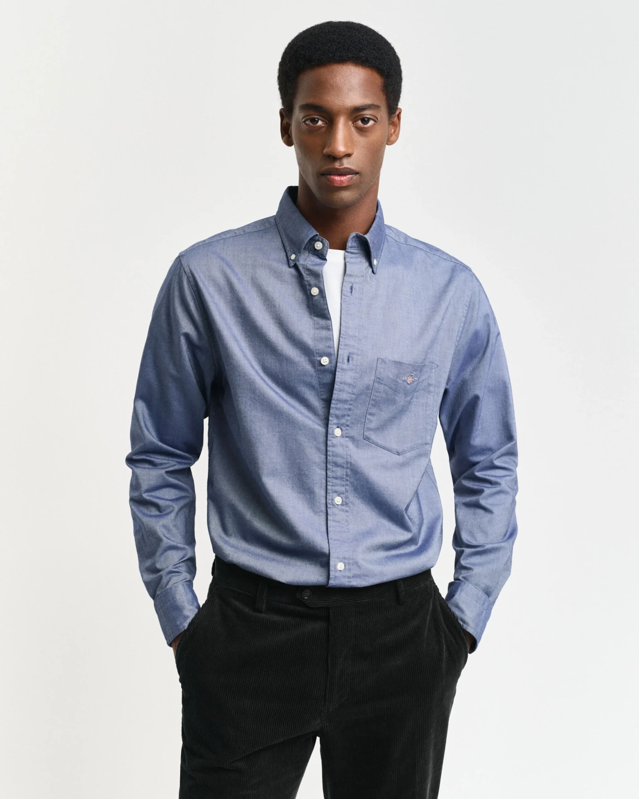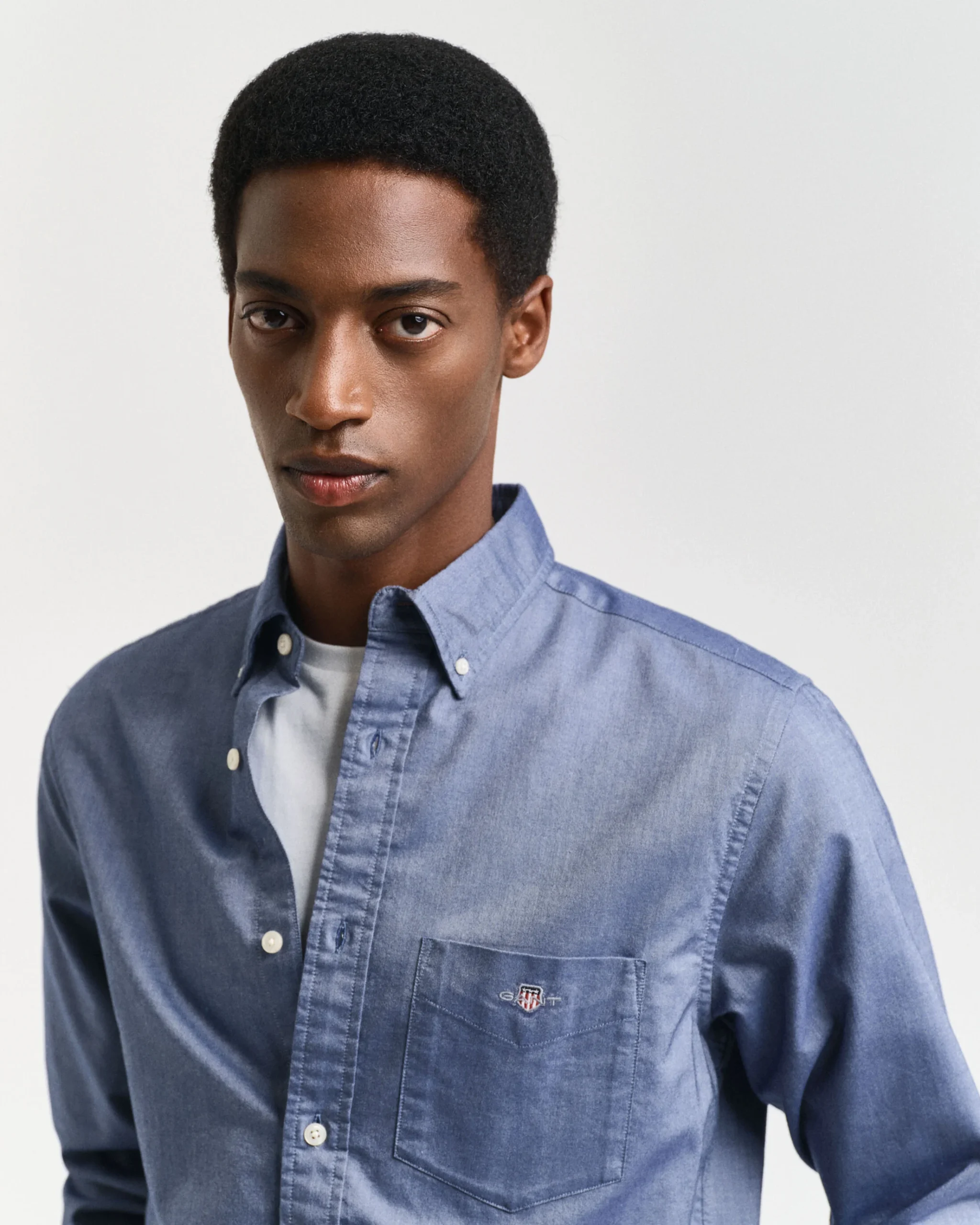 Ανδρικό oxford πουκάμισο, από τη δημιουργική ομάδα του οίκου Gant. Το θρυλικό λογότυπο του οίκου βρίσκεται κεντημένο πάνω στην τσέπη που υπάρχει στο στήθος. Από 100% βαμβακερό ύφασμα, σε κανονική γραμμή.