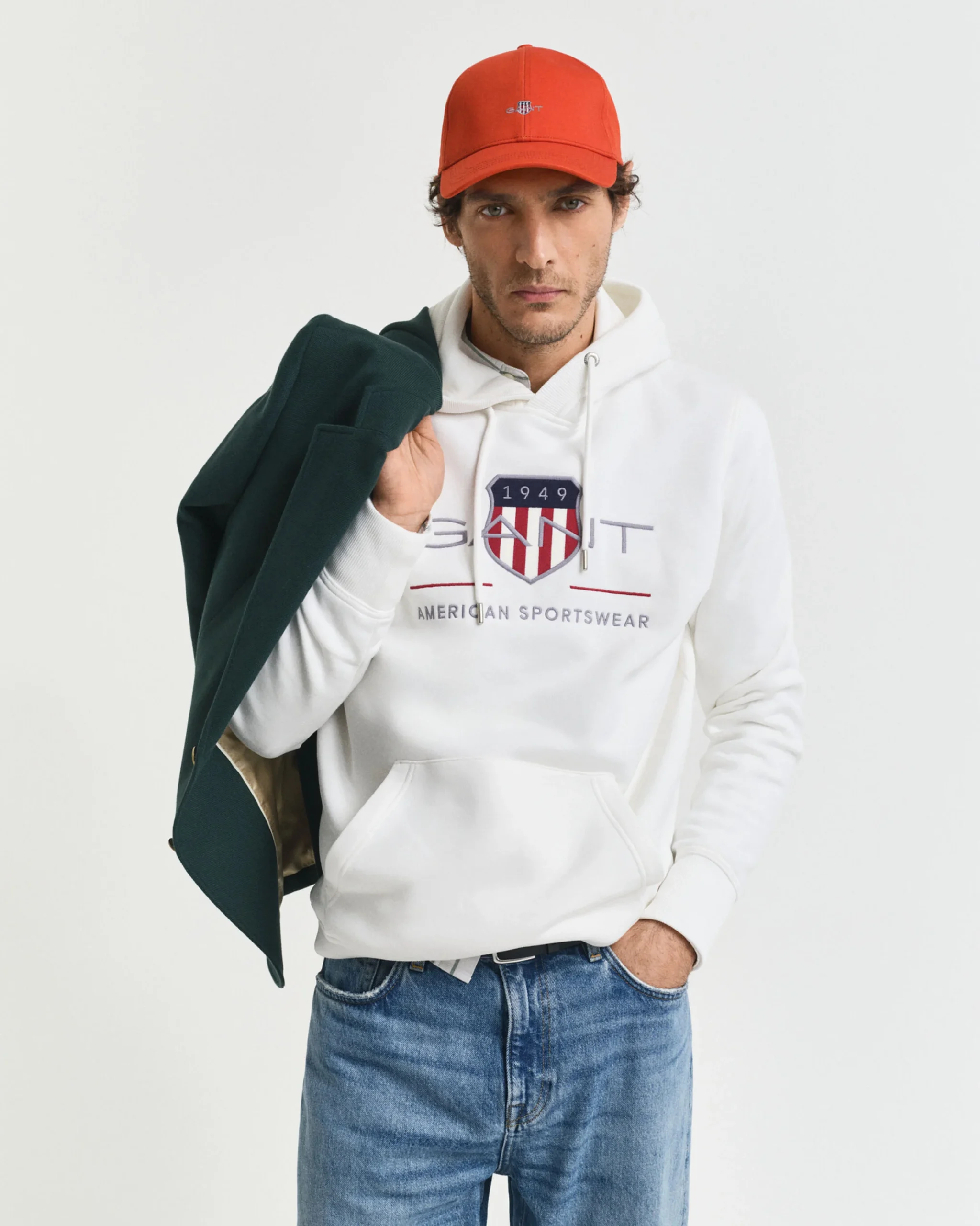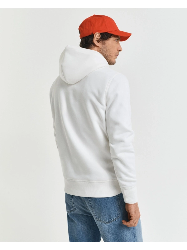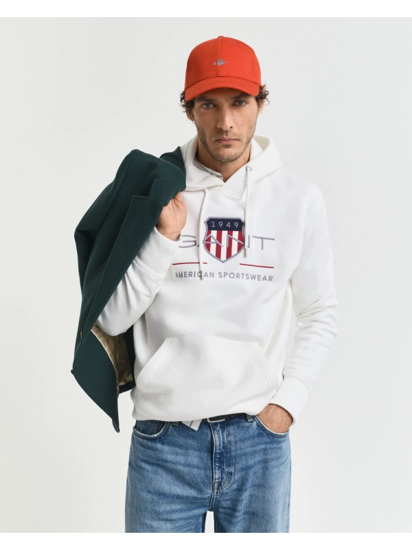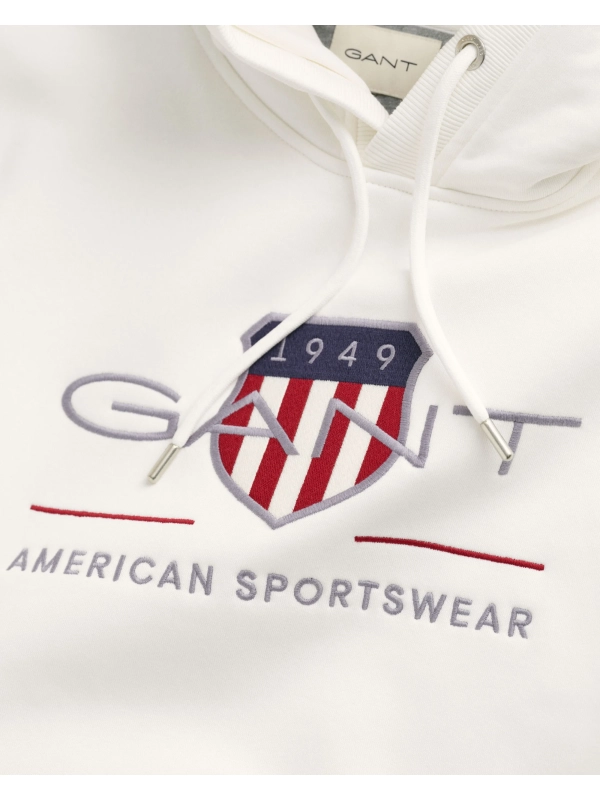 Φούτερ με κουκούλα, δημιουργία του οίκου Gant. Είναι διακοσμημένο με κεντημένο το οικόσημο του οίκου Gant στο στήθος και αποτελεί κομμάτι της συλλογής της American Sportswear. Διαθέτει μεγάλη τσέπη-μάρσιπο στην κοιλιά. Από απαλό και ταυτόχρονα ζεστό ύφασμα, σε κανονική γραμμή.