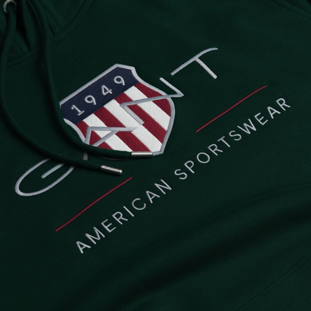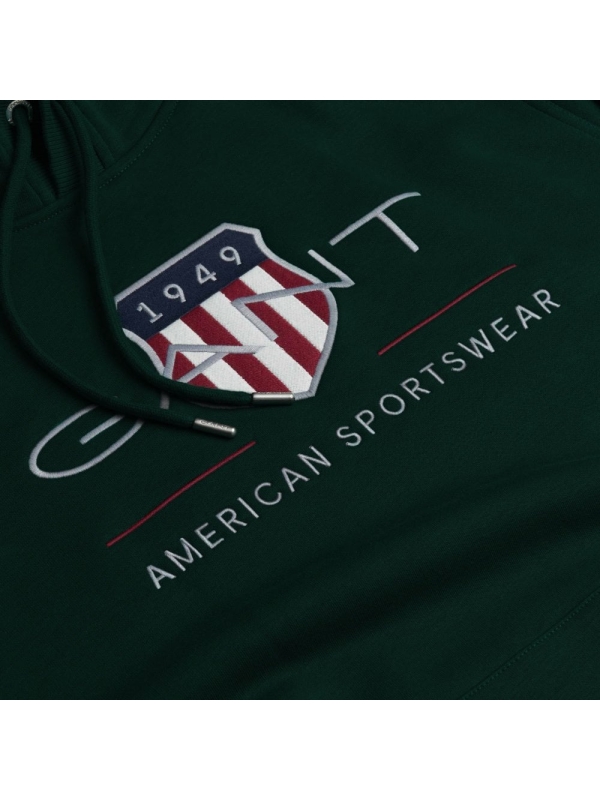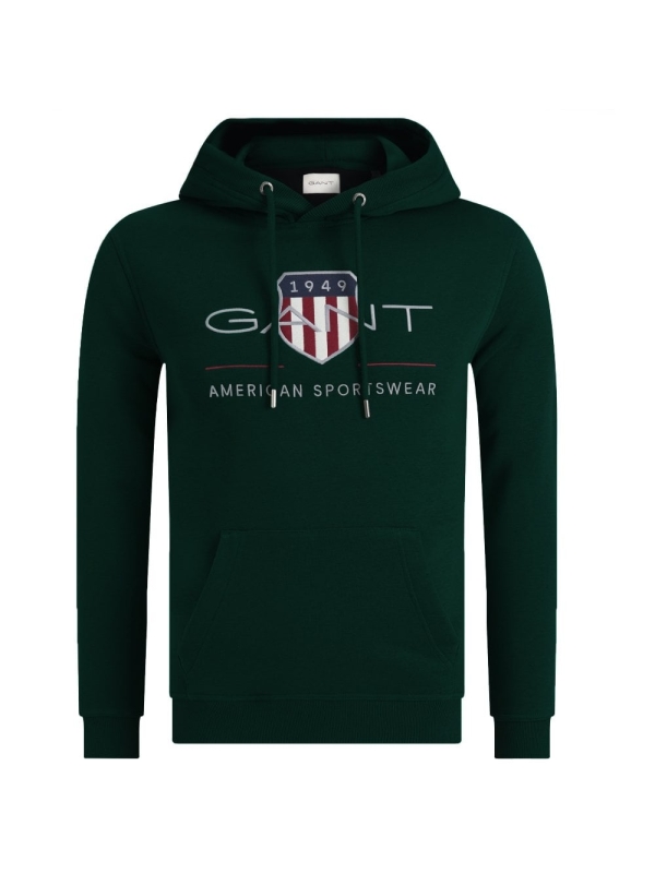 Φούτερ με κουκούλα, δημιουργία του οίκου Gant. Είναι διακοσμημένο με κεντημένο το οικόσημο του οίκου Gant στο στήθος και αποτελεί κομμάτι της συλλογής της American Sportswear. Διαθέτει μεγάλη τσέπη-μάρσιπο στην κοιλιά. Από απαλό και ταυτόχρονα ζεστό ύφασμα, σε κανονική γραμμή.