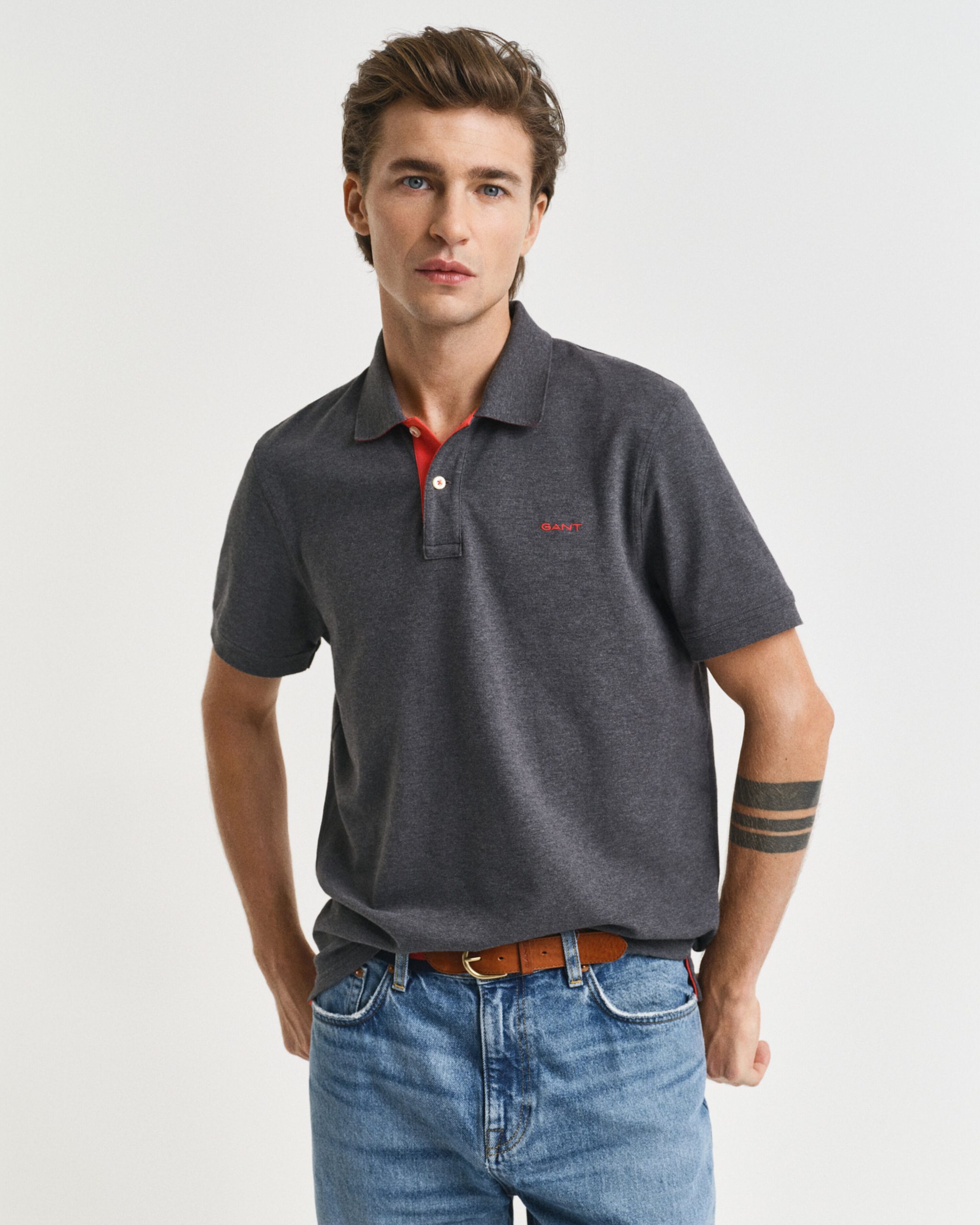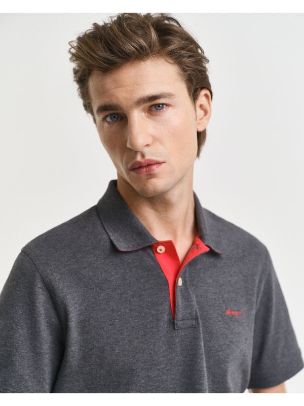 Πικέ polo μπλούζα, από την δημιουργική ομάδα των σχεδιαστών του οίκου Gant. Είναι διακοσμημένη με έντονες διχρωμίες στην πατιλέτα. Το διάσημο λογότυπο του οίκου Gant, που αποτελεί και ένα από τα πλέον αναγνωρίσιμα εμβλήματα της ανδρικής ένδυσης, βρίσκεται κεντημένο στο στήθος. Από ελαστικό, βαμβακερό ύφασμα, σε κανονική γραμμή.