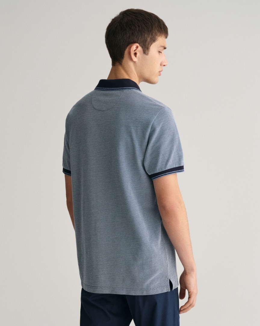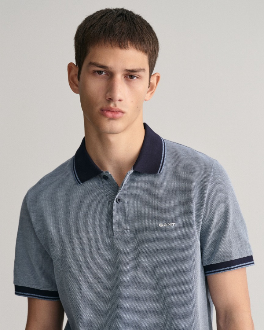 Πικέ polo μπλούζα, με διχρωμίες, από την νέα συλλογή του οίκου Gant. Είναι διακοσμημένη με δίχρωμες ribbed λεπτομέρειες στο γιακά και τα μανίκια, ενώ όλα το πικέ ύφασμα είναι κατασκευασμένο με δίχρωμες διαβαθμίσεις. Το διάσημο λογότυπο του οίκου Gant, βρίσκεται κεντημένο στο στήθος. Από 100% βαμβακερό ύφασμα, σε κανονική γραμμή.