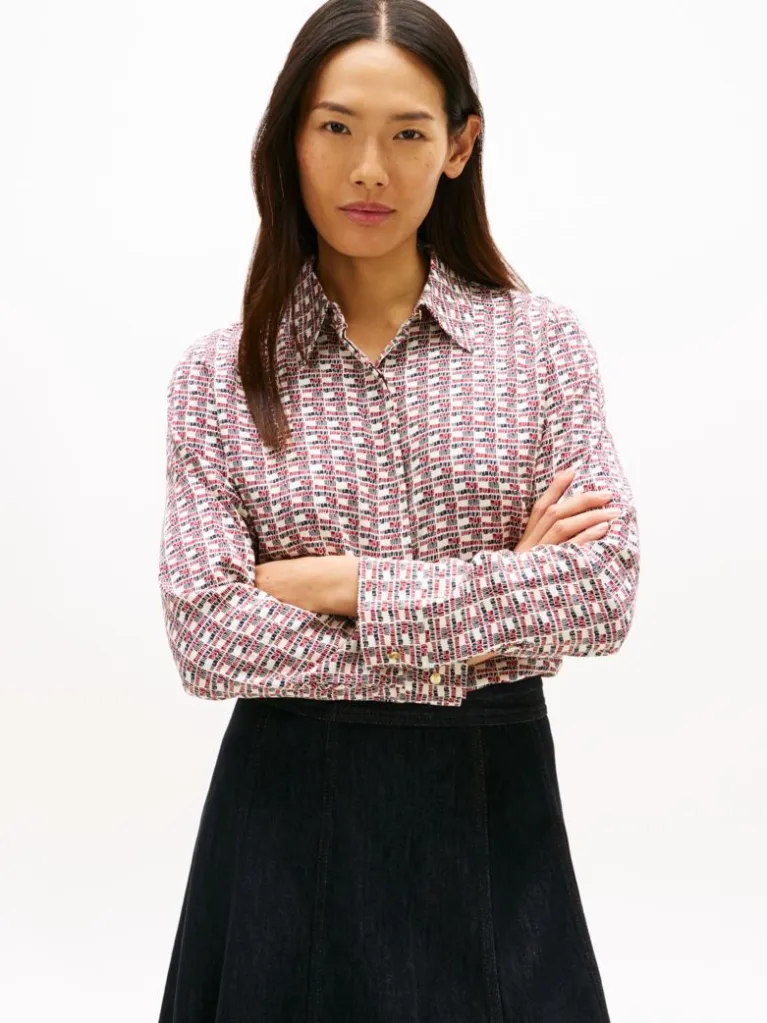 Προσθέστε signature στιλ στις εμφανίσεις σας με αυτό το γυναικείο πουκάμισο κανονικής εφαρμογής από twill, διακοσμημένο με κουμπιά με ανάγλυφη σημαία.