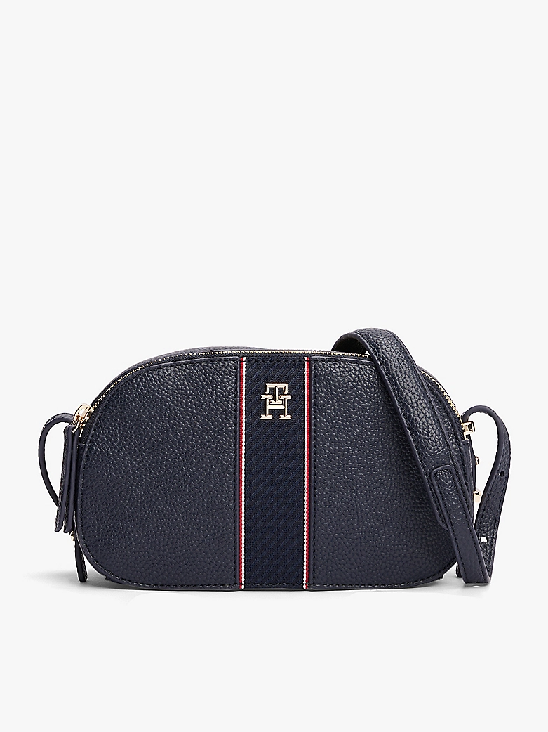 Οι υφαντές λεπτομέρειες υπογραφής, τα πάνελ με φερμουάρ και η πλάκα μονογράμματος TH δίνουν σε αυτήν την έξυπνη τσάντα φωτογραφικής μηχανής την κορυφαία βαθμολογία στυλ της.
