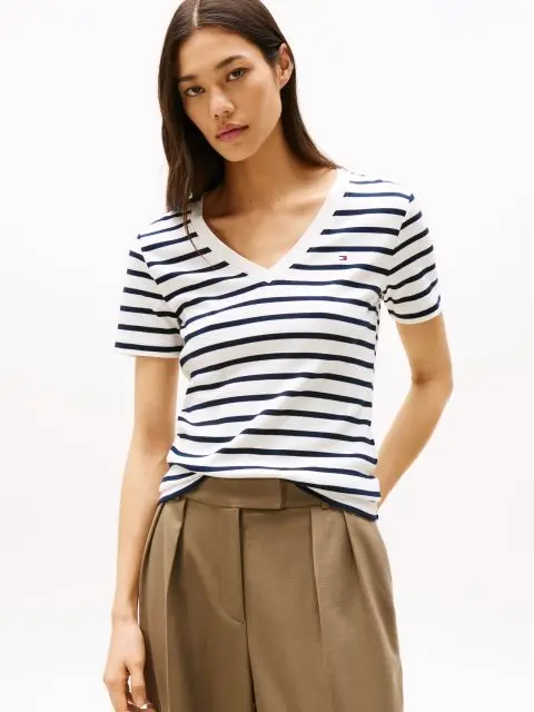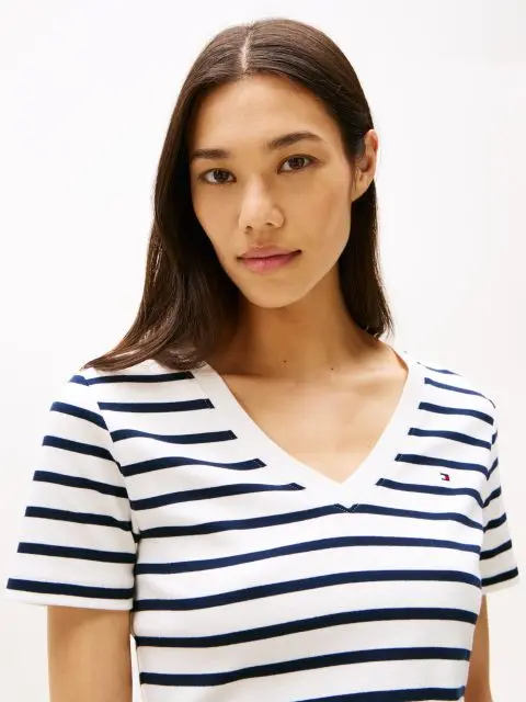 Κομψές και άνετες, με αυτό το βαμβακερό γυναικείο t-shirt το οποίο διαθέτει λαιμόκοψη V και branded λεπτομέρειες.