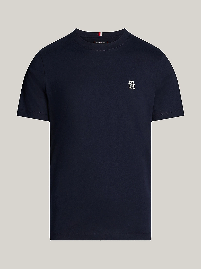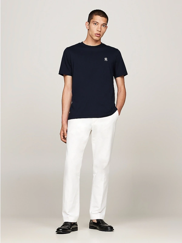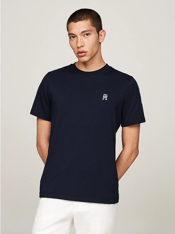 Ανδρική, t-shirt μπλούζα με λαιμόκοψη, δημιουργία του οίκου Tommy Hilfiger. Είναι διακοσμημένη με το λογότυπο του οίκου Tommy Hilfiger κεντημένο στο στήθος καθώς και με το “TH” logo του οίκου. Από 100% βαμβακερό ύφασμα, σε κανονική γραμμή.